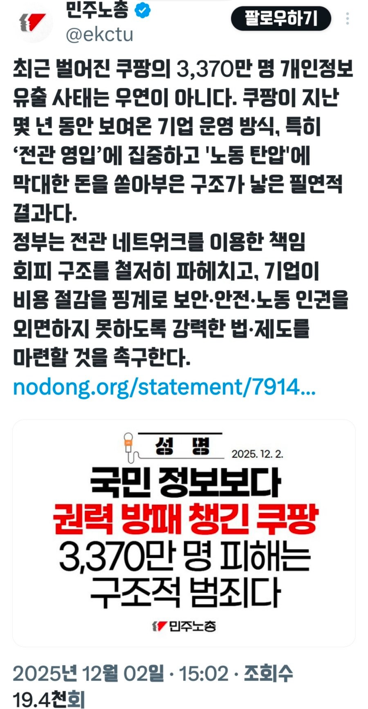 쿠팡 공격하는 민노총 ㄷㄷ;;