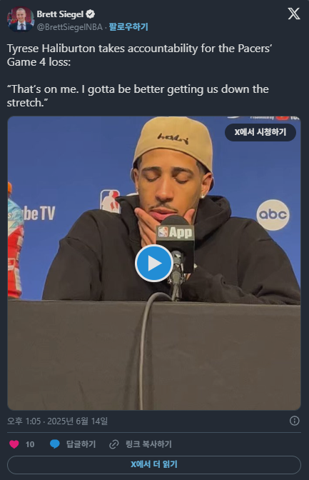 [NBA] 4차전 패배가 자신한테 있다고 말한 할리버튼