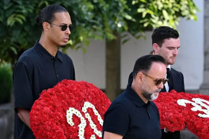 리버풀 선수단 대부분은 형제의 장례식을 위해 포르투 외곽 곤도마르까지 이동했다. 금요일 밤 늦게 도착한 이들은 산 코스메 예배당에서 열린 장례 전야식에 참석했다. 예배당 바깥에는 조용히 모여든 지역 주민들이 있었다. 그들이 선수들에게 보내는 박수는 경건했고 조심스러웠다. 그리고 평소라면 선수들끼리 모였을 때 흔히 들리던 농담과 웃음소리는 이 자리에는 존재하지 않았다. 모두가 깊은 충격에 잠긴 얼굴이었다.